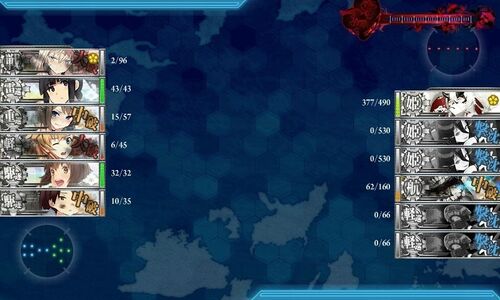 まずはE3と同じくギミックの解除から。 丙難易度のHIDCでサクッとS勝利。 HIDは空母機動部隊。航空隊はIに集中集中集中。 Cは水上打撃部隊。第二艦隊は空母機動部隊のをそのまま流用。 さて、沼開始。